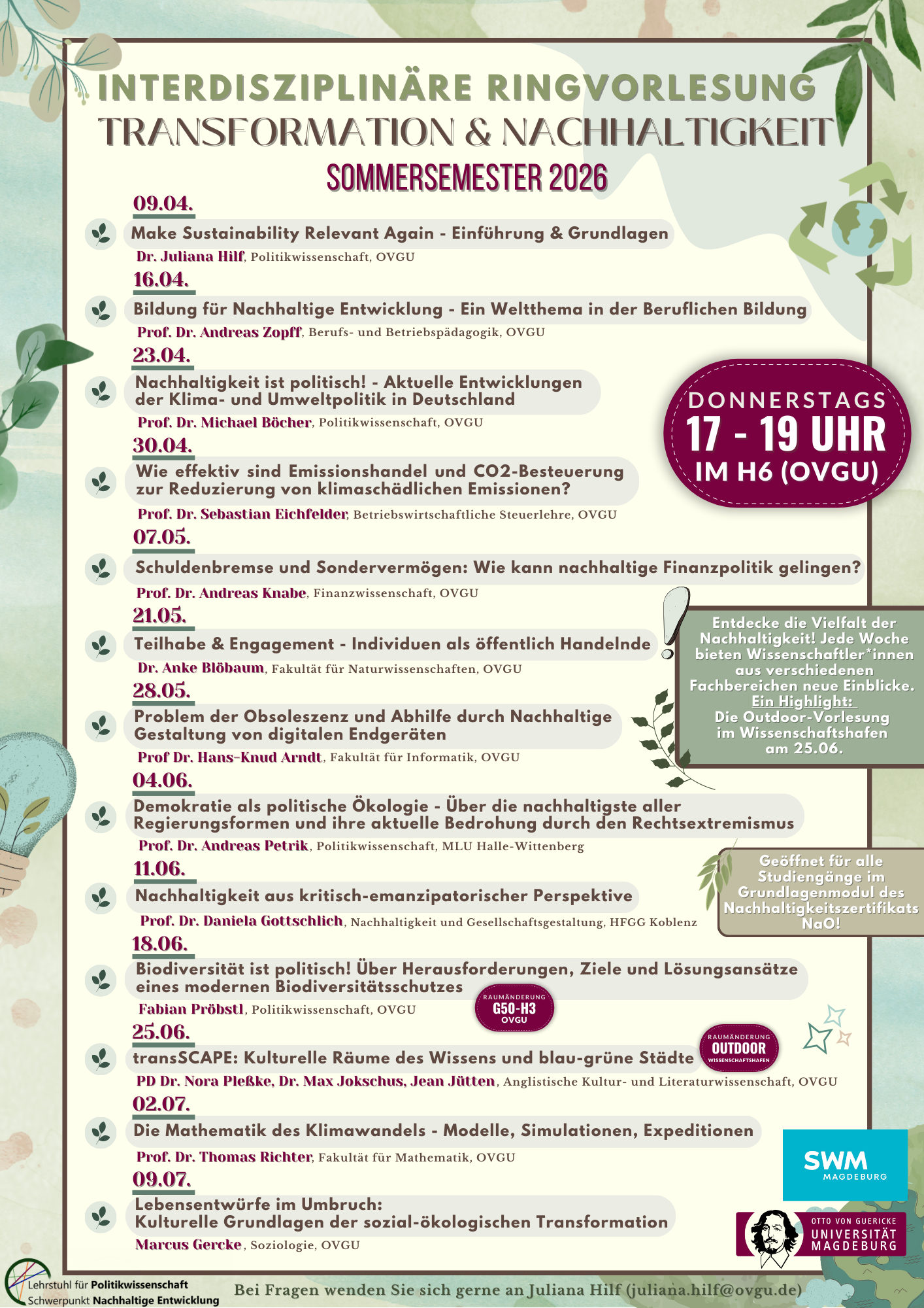 Die Fakultät für Humanwissenschaften (FHW) wurde 1993 gegründet, blickt aber auf eine Geschichte, die bis ins Jahr 1953 zurückreicht. Gemessen an der Zahl von über 3500 Studierenden ist sie eine der größten Fakultäten der Otto-von-Guericke-Universität Magdeburg. Mit ihren Fächern analysiert die Fakultät für Humanwissenschaften wichtige Entwicklungen der demokratischen Gesellschaft und all ihrer Äußerungsformen. Dabei ist sie Impulsgeber und Beratungsinstanz für die politischen, gesellschaftlichen, pädagogischen und wirtschaftlichen Institutionen des Landes. Die Besonderheit der Fakultät liegt in der Heterogenität und Perspektivenvielfalt. Sie nutzt den humanwissenschaftlichen Fächerkanon, um komplexe Systeme und Menschen in ihrer Lernfähigkeit zu fördern. Auf Basis ihrer interdisziplinären Identität stellen die Fächer in Forschung und Lehre Bezüge zu den Profilschwerpunkten der Universität her.